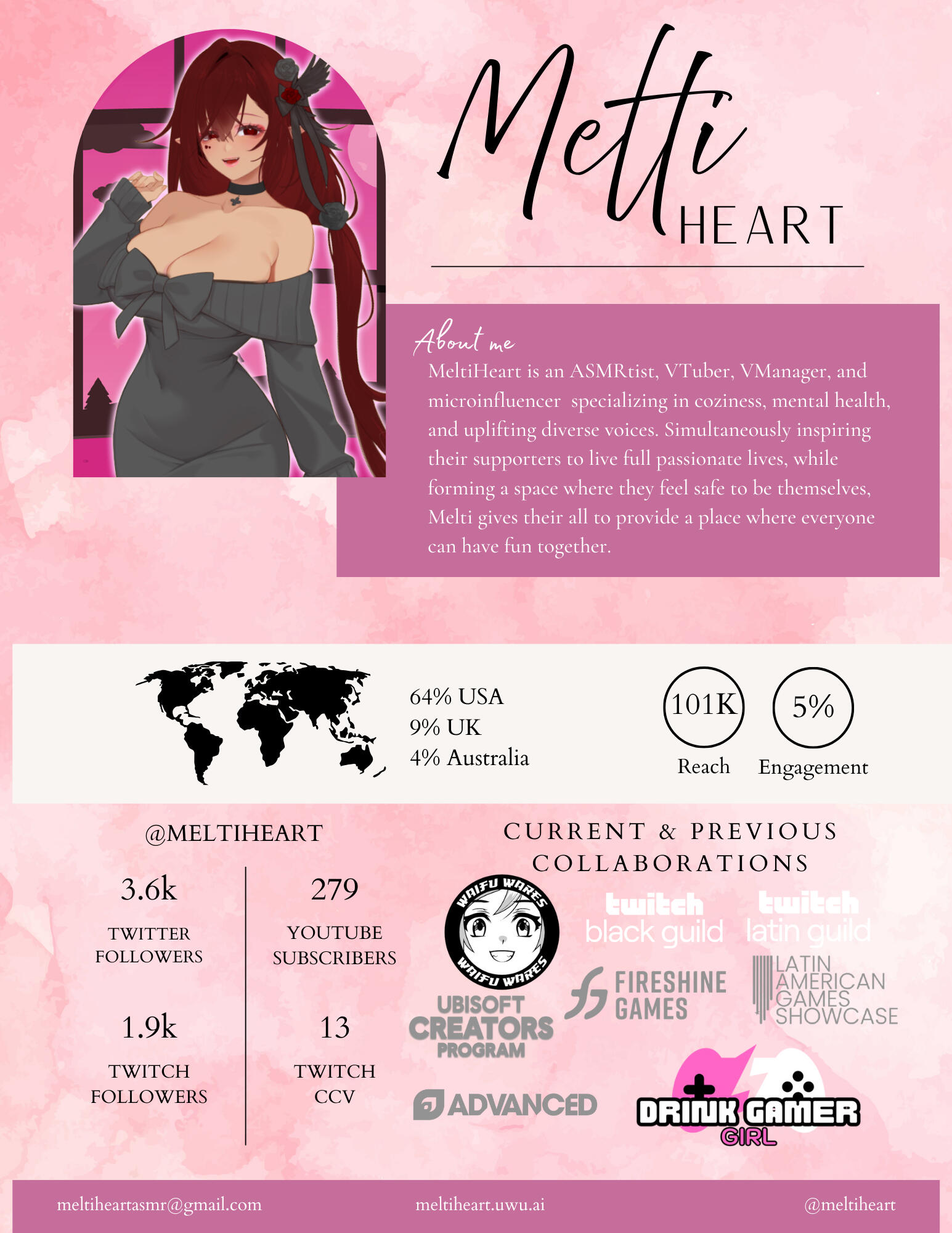 Melti♡Heart is an ASMRtist, VTuber, VManager, and Artist.